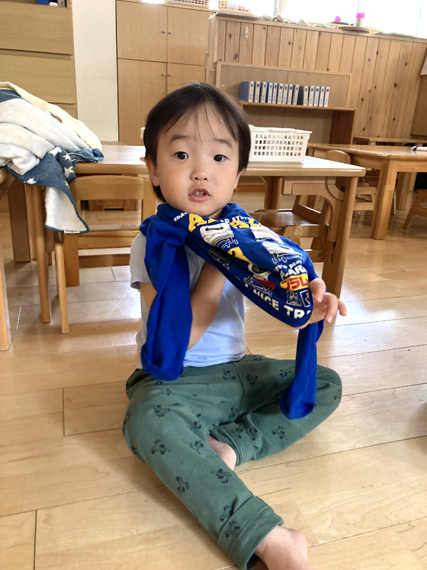 洋服の着替えにも意欲を見せ始め、自分でしようとする気持ちが芽生えてきます。