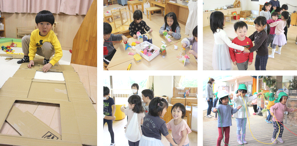 平行あそびから仲間を意識するように、ある空間の中で道具を共有することができるようになります。