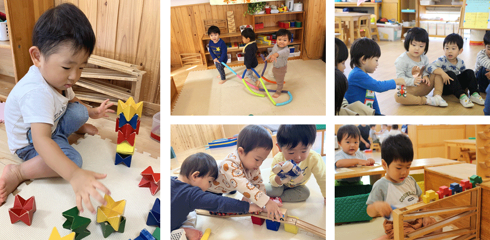 - 体全体を使う遊びと手元を使う遊びをバランスよく取り入れます。