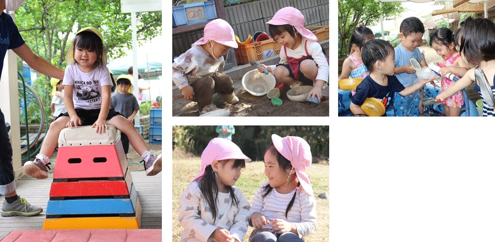 - 園庭・ウッドデッキでもたくさんあそびます。