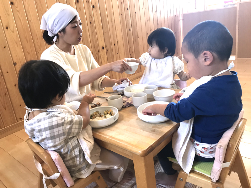 子どもが意欲を持って美味しく上手に食べられるような適切な援助の方法や環境作りを心掛けています。